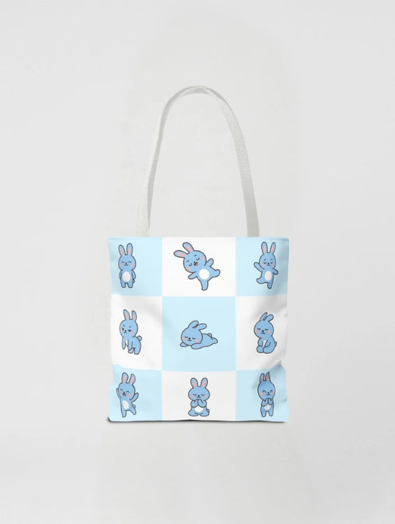 Meet Benny The Bunny in a grid of moods, each one vibing differently than the last. Some are judging you, some are vibing, and some are just straight-up chaotic. Basically, this tote is like carrying a squad of adorable mood consultants wherever you go.